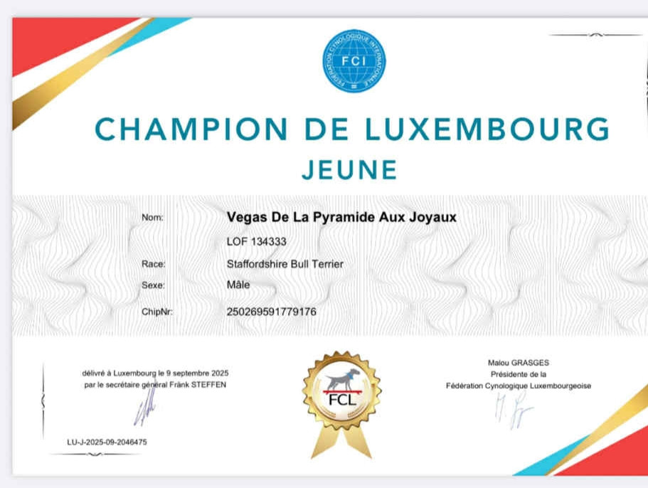 diplôme de championne de France au standard 2023 pour notre belle resca Elle est la 2eme Pyramide aux joyaux a obtenir ce prestigieux et difficile titre
